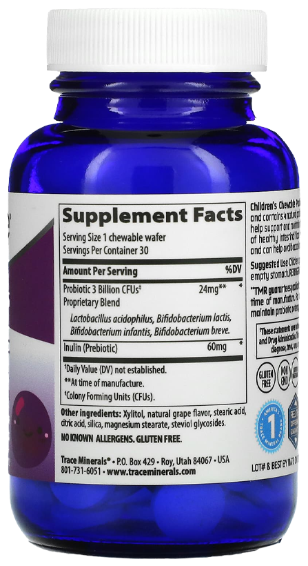 Trace Minerals Чуибл Пробиотик, 30 таблеток