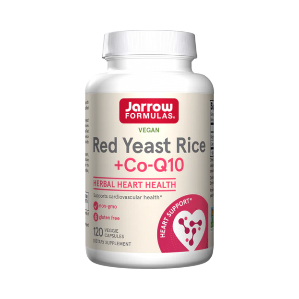 Красный дрожжевой рис - рис, ферментированный дрожжами Monascus purpureus, веками использовался в Азии в качестве пищевого консерванта, пищевого красителя и ароматизатора, а также в традиционных травяных формулах. Jarrow Formulas использует красный дрожжевой рис, который тщательно ферментируется, чтобы избежать присутствия цитринина, природного микотоксина. Коэнзим Q10 дополняет красный дрожжевой рис и поддерживает здоровье сердечно-сосудистой системы.